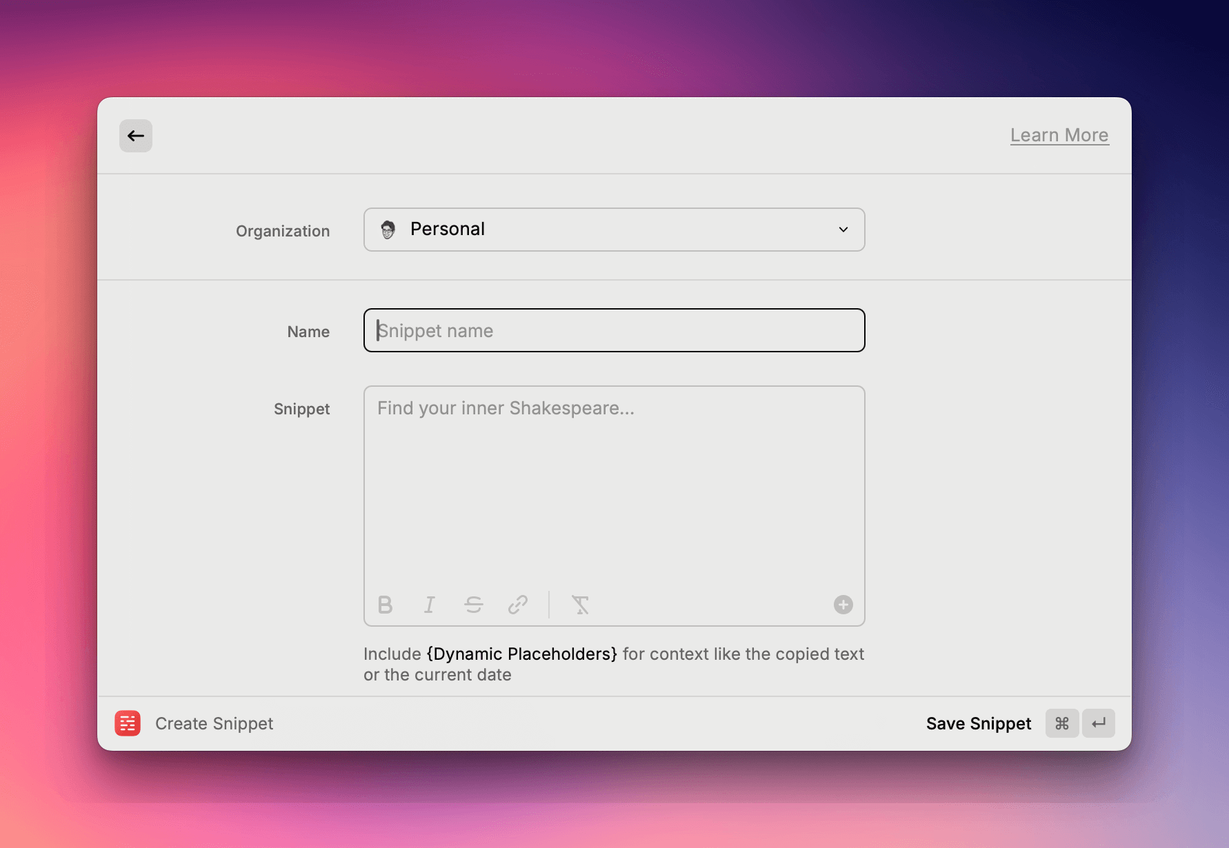 Create Snippet(スニペットをつくる)